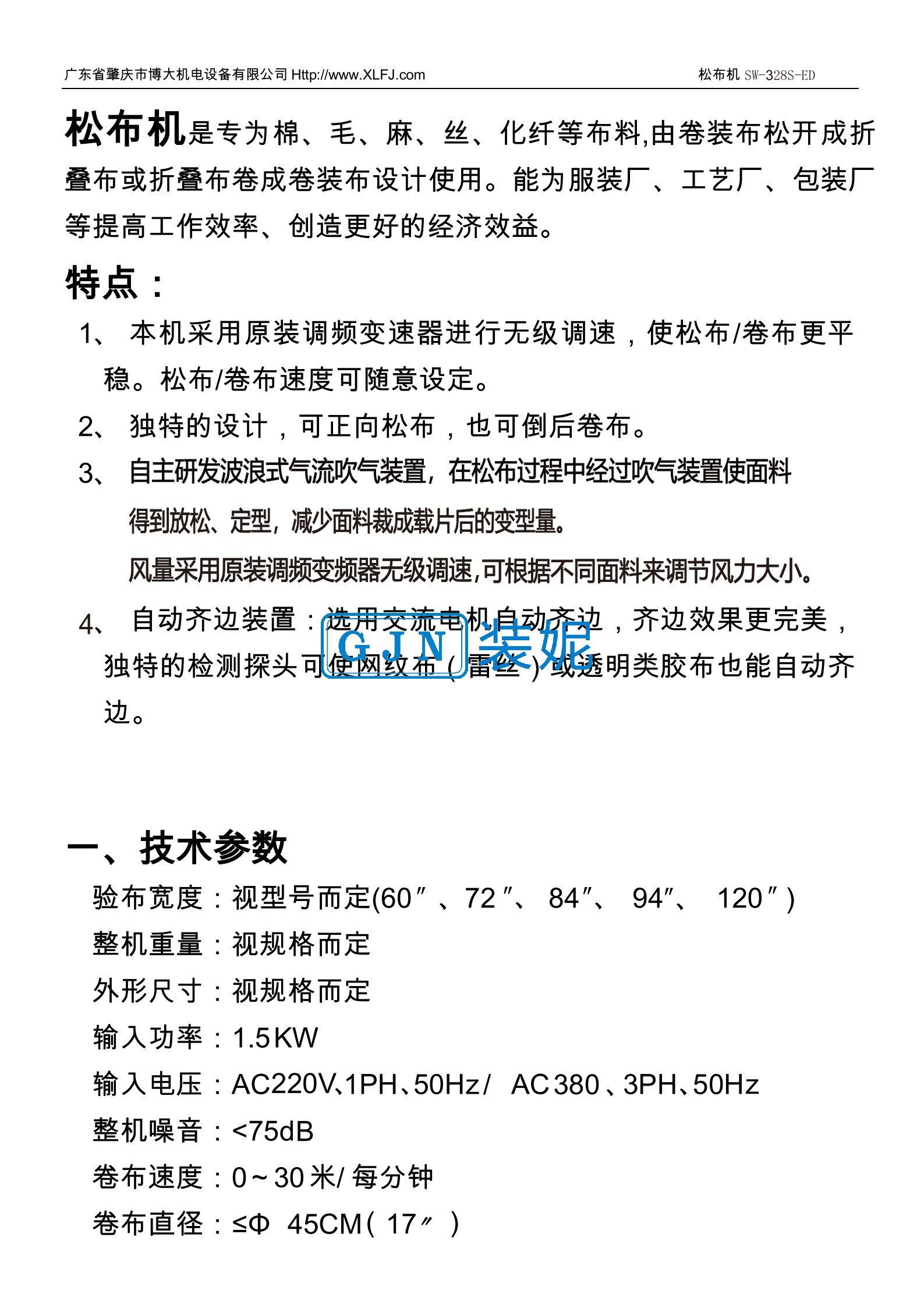 SW-328S-ED 气浮式自动对边松布机